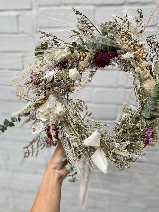 We offer Arch flower arrangements, Centerpieces, Hair Accessories, all made with dried flowers. These products can be shipped to the UK and other countries or can be picked up from our studio in Loughton, London.